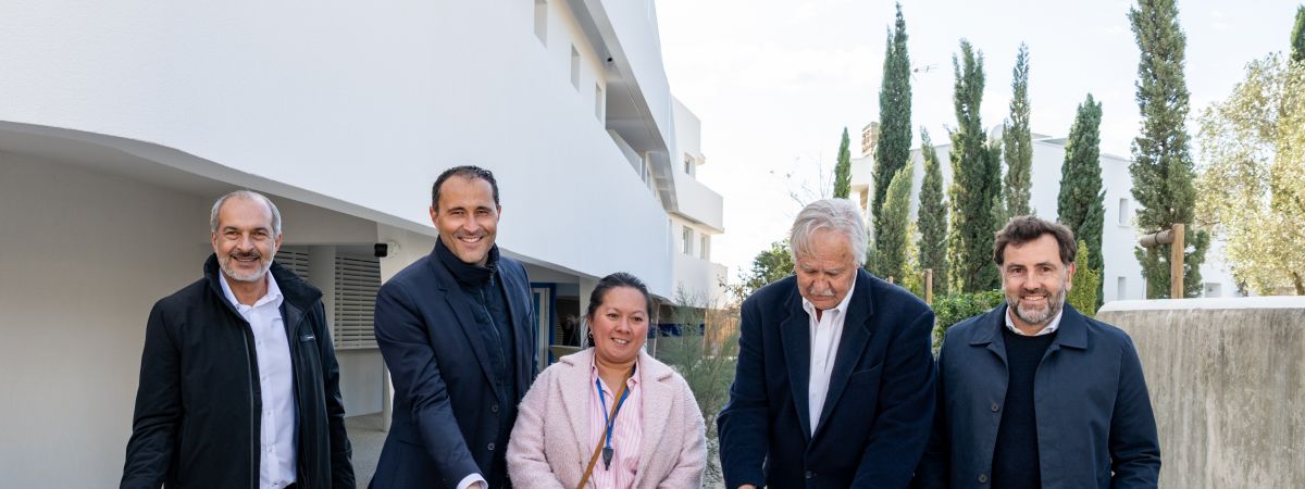 L’inauguration s’est déroulée en présence de : Mathieu Massot, Directeur Général du Groupe FDI, Lucien Vigouroux, 3ᵉ adjoint au Maire du Grau-du-Roi, délégué à l’urbanisme et aux projets urbains et Fabien Thuile, architecte du projet – Ateliers A+.