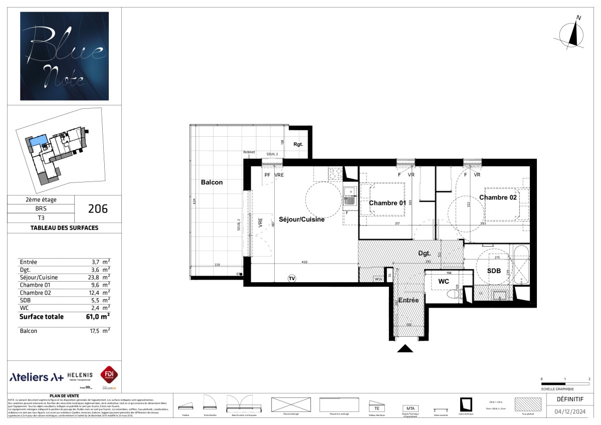 | 206 | 0 | N° de lot 206. Appartement + Parking sous-sol + Cave Terrasse de 17,50 m² | 3p | 61,00 m² Plan | 5,5 % | Plan | 209 000 € |