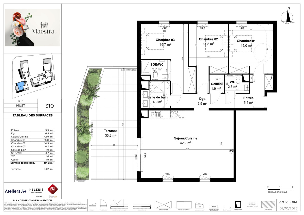 | A310 | 3 | Appartement + Parking sous-sol + Parking sous-sol Terrasse de 33,20 m² | 4p | 114,20 | 20 % | Plan | 561 000 € | |