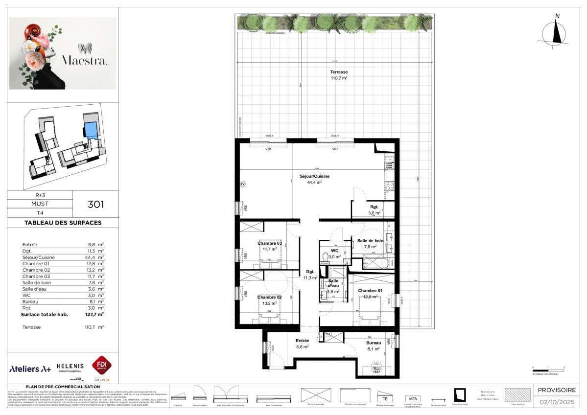 | A301 | 3 | Appartement + Parking sous-sol + Parking sous-sol Terrasse de 110,70 m² | 4p | 127,70 | 20 % | Plan | 670 000 € |