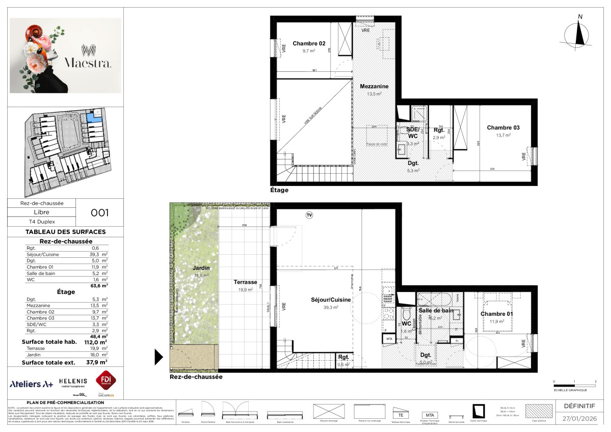 | A001 | 0 | N° de lot A001. Appartement + Parking sous-sol + Parking sous-sol Terrasse de 19,90 m² Jardin de 18,00 m² | 4p+ | 112,00 m² Plan | 5,5 % | ![]() | Plan | 429 913 € |