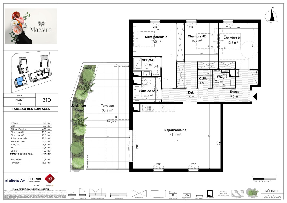 | A310 | 3 | N° de lot A310. Appartement + Parking sous-sol + Parking sous-sol Terrasse de 33,20 m² | 4p | 114,60 m² Plan | 5,5 % | ![]() | Plan | 493 213 € |