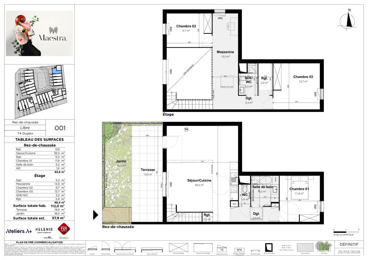 | A001 | 0 | Appartement + Parking sous-sol + Parking sous-sol Terrasse de 19,90 m² Jardin de 18,00 m² | 4p+ | 112,00 | 5,5 % | ![]() | Plan | 429 913 € |