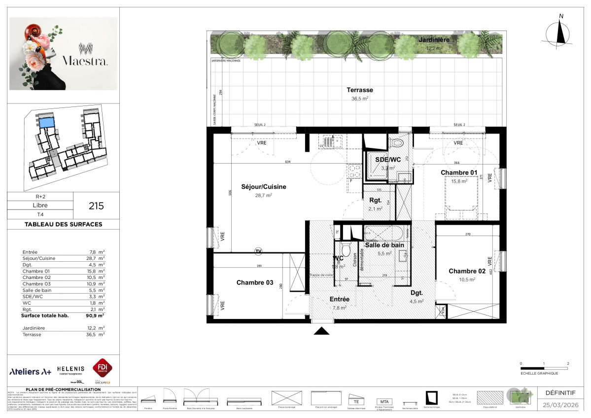 | A215 | 2 | N° de lot A215. Appartement + Parking sous-sol + Parking sous-sol Terrasse de 35,60 m² | 4p | 91,10 m² Plan | 5,5 % | ![]() | Plan | 385 075 € |