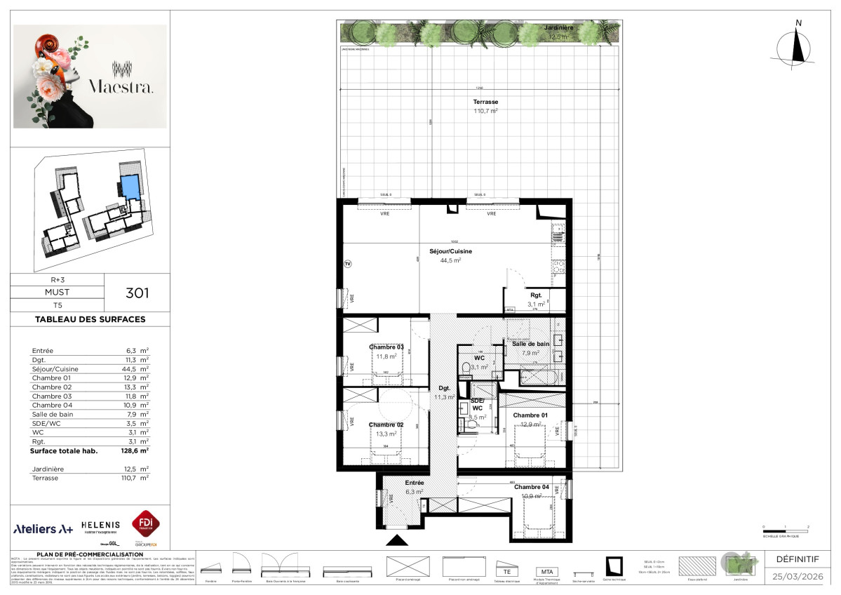 | A301 | 3 | Appartement + Parking sous-sol + Parking sous-sol Terrasse de 110,70 m² | 5p | 128,60 | 5,5 % | ![]() | Plan | 589 042 € |