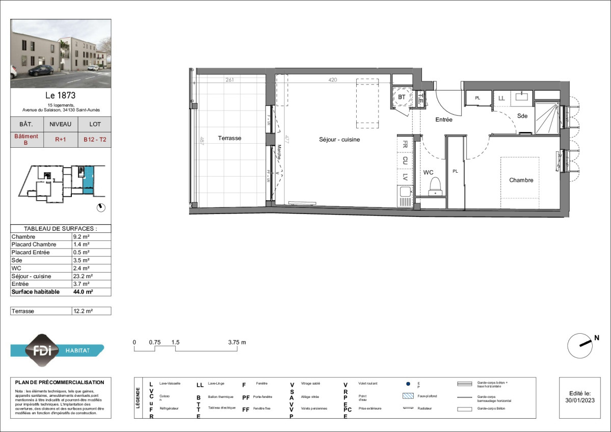 | B12 | 1 | Appartement + Parking sous-sol Terrasse de 12,20 m² | 2p | 44,00 | 5,5 % | Plan | 167 000 € |