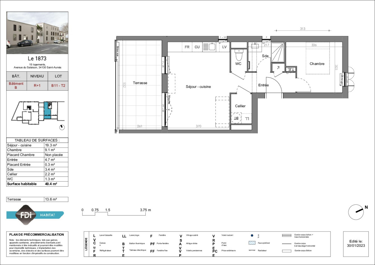 | B11 | 0 | N° de lot B11. Appartement + Parking sous-sol Terrasse de 13,60 m² | 2p | 40,40 m² Plan | 5,5 % | Plan | 161 000 € |