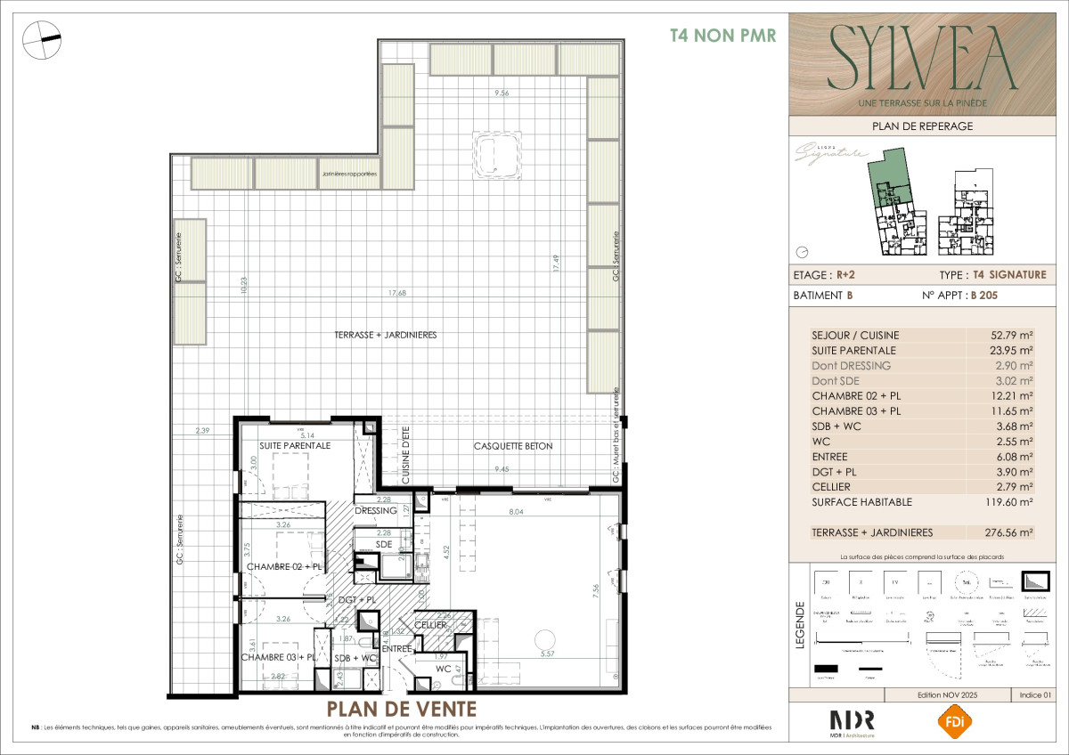 | B205 | 2 | N° de lot B205. Appartement + Parking sous-sol + Parking sous-sol Terrasse de 190,17 m² | 4p | 120,23 m² Plan | 20 % | Plan | 679 000 € |
