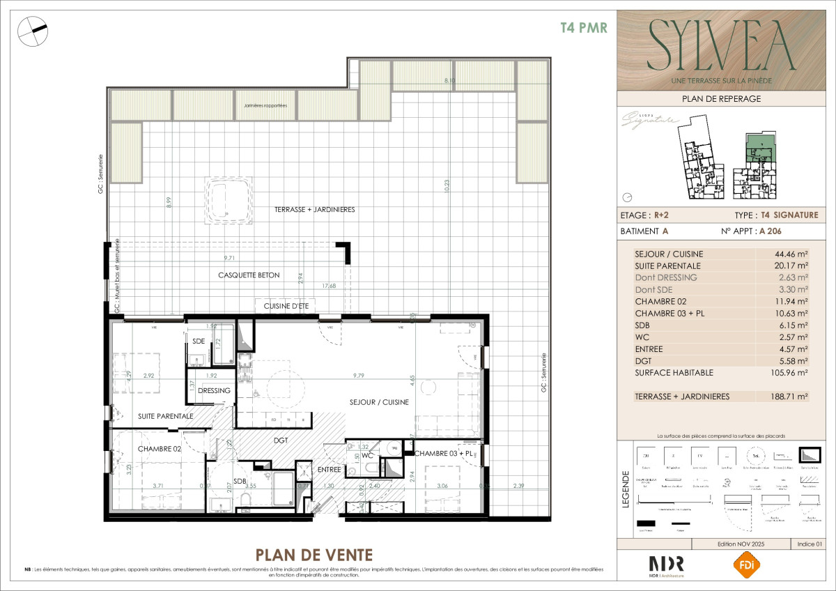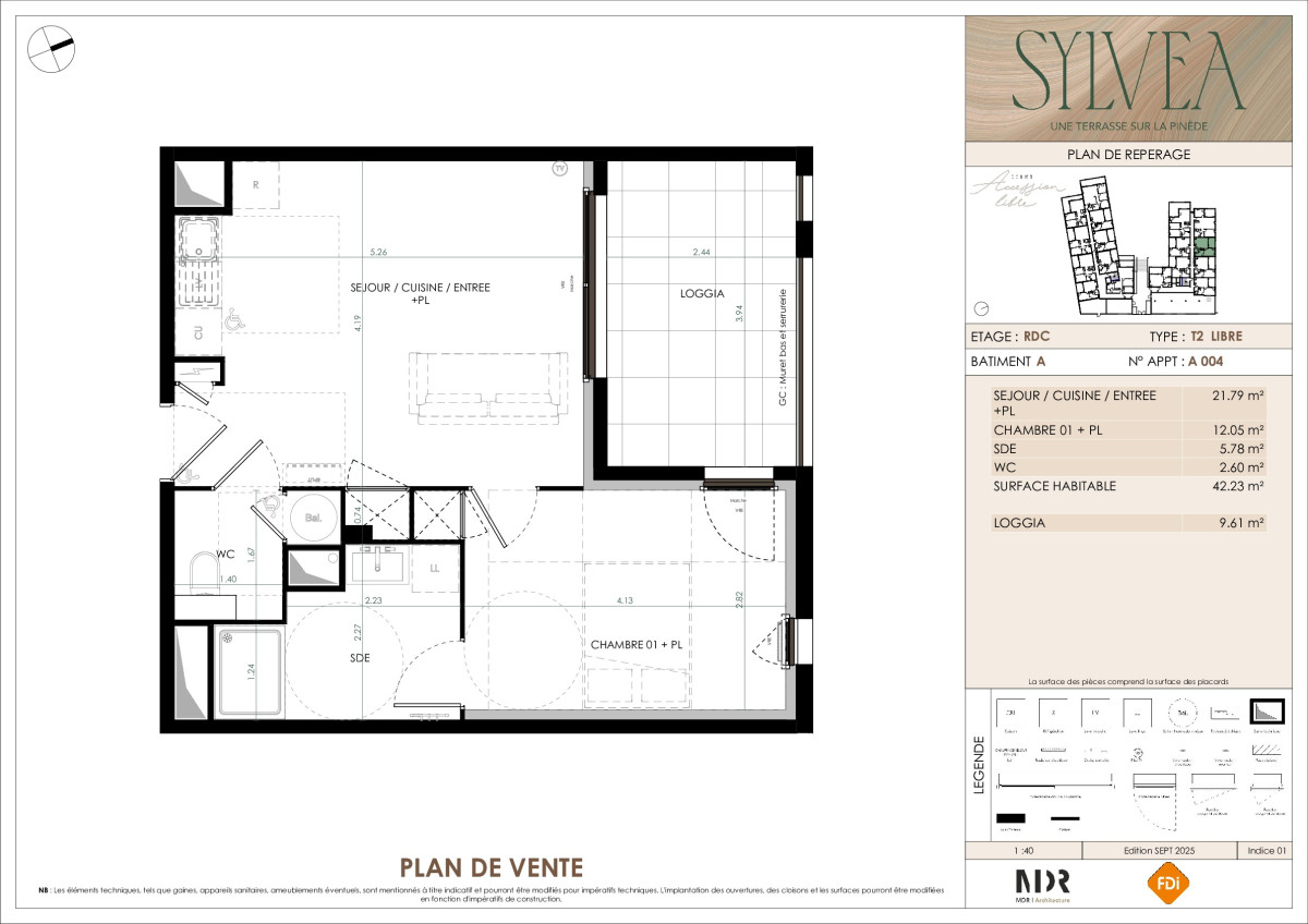 | A004 | 0 | Appartement + Parking sous-sol + Parking sous-sol Terrasse de 9,61 m² | 2p | 42,26 | 20 % | Plan | 218 000 € |