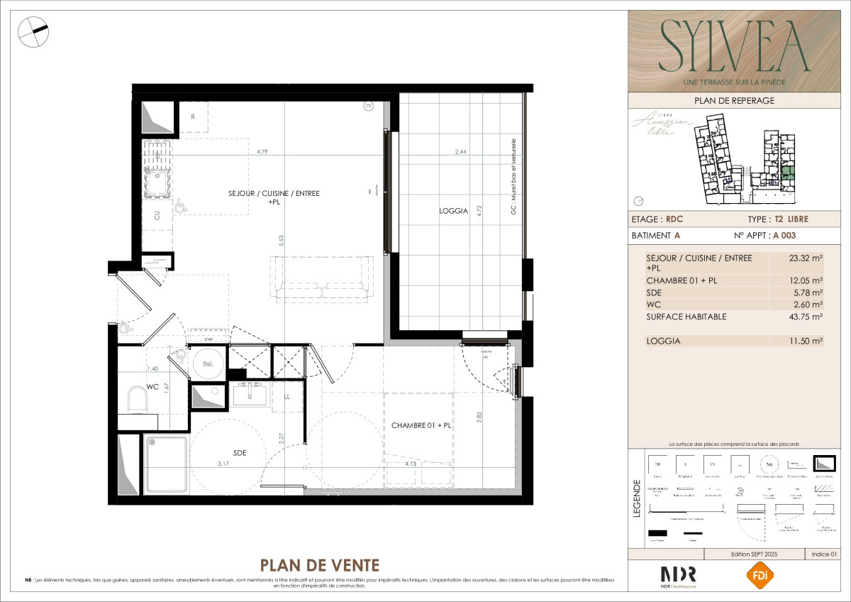 | A003 | 0 | Appartement + Parking sous-sol + Parking sous-sol Terrasse de 11,50 m² | 2p | 43,82 | 20 % | Plan | 227 000 € |