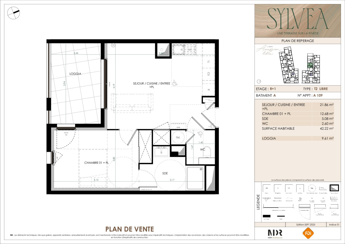 | A109 | 1 | N° de lot A109. Appartement + Parking sous-sol + Parking sous-sol Terrasse de 9,61 m² | 2p | 42,21 m² Plan | 20 % | Plan | 222 000 € |