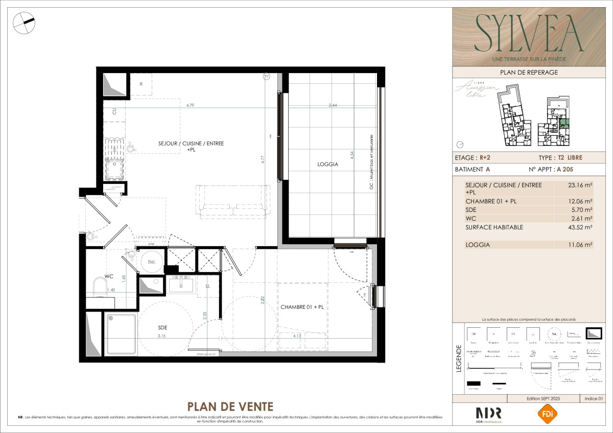 | A205 | 2 | Appartement + Parking sous-sol + Parking sous-sol Terrasse de 11,06 m² | 2p | 43,82 | 20 % | Plan | 239 000 € |