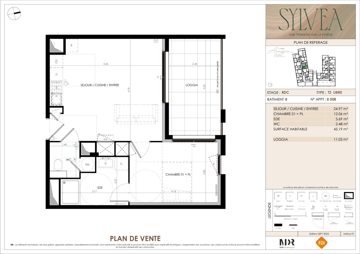 | B008 | 0 | Appartement + Parking sous-sol + Parking sous-sol Terrasse de 11,03 m² | 2p | 45,31 | 20 % | Plan | 229 000 € |
