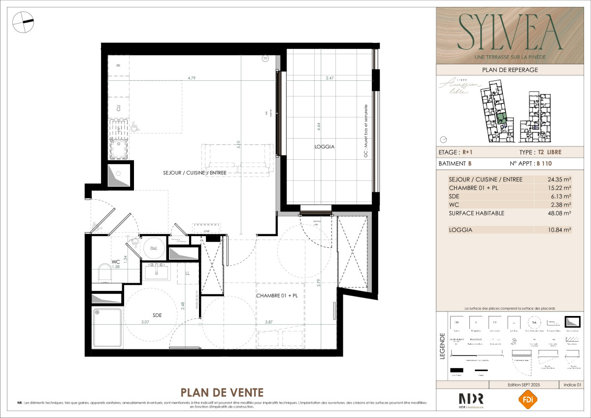 | B110 | 1 | Appartement + Parking sous-sol + Parking sous-sol Terrasse de 10,84 m² | 2p | 48,20 | 20 % | Plan | 227 000 € |