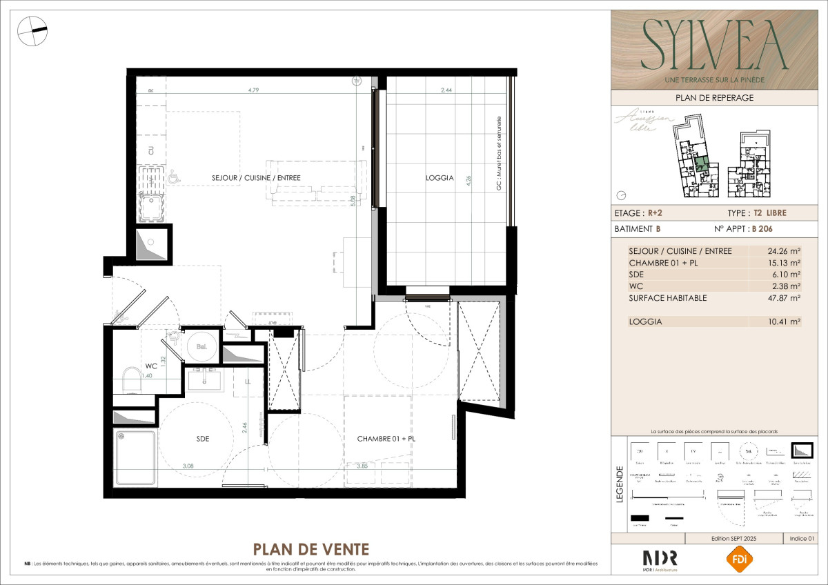 | B206 | 2 | N° de lot B206. Appartement + Parking sous-sol + Parking sous-sol Terrasse de 10,41 m² | 2p | 48,18 m² Plan | 20 % | Plan | 239 000 € |