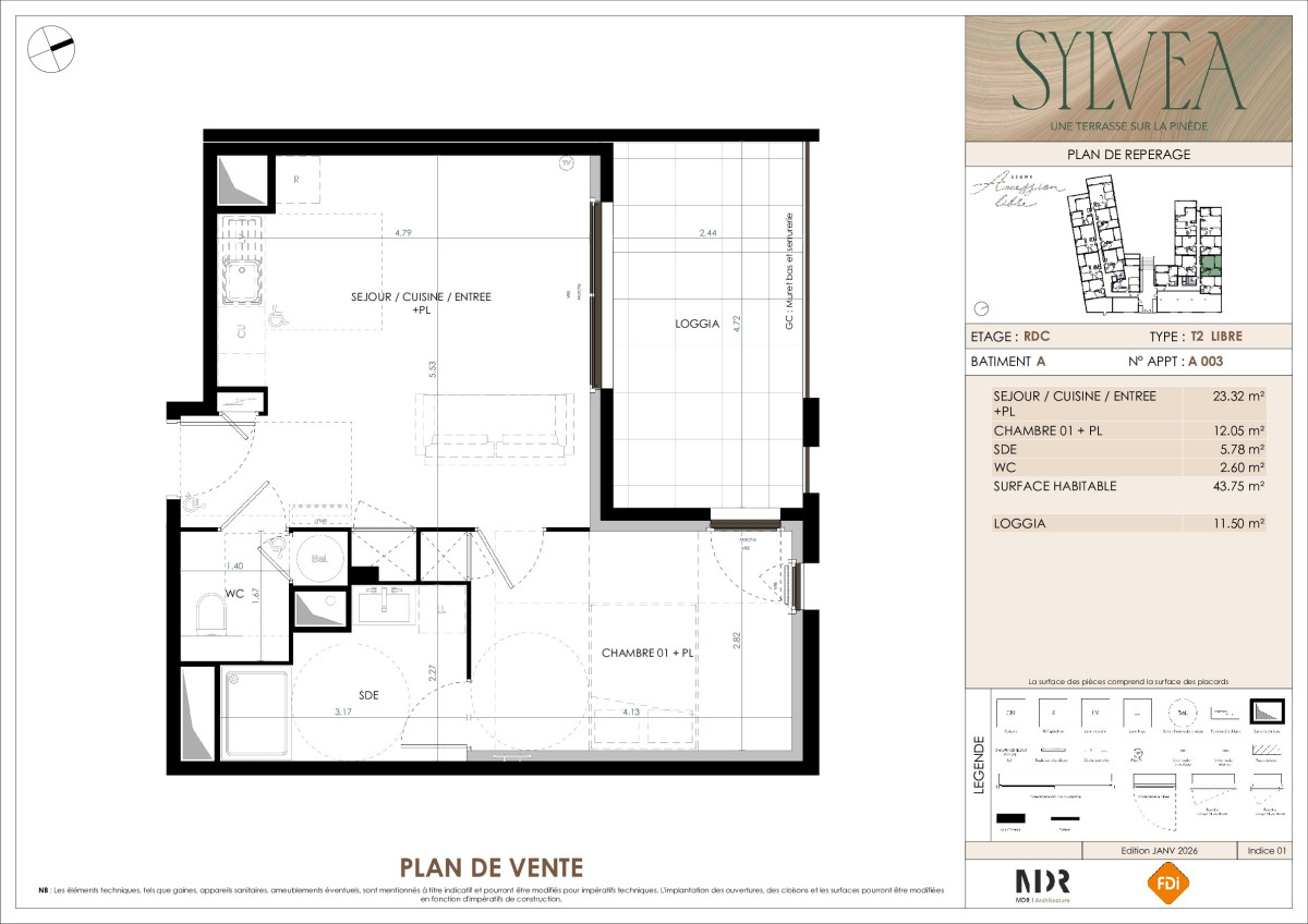 | A003 | 0 | Appartement + Parking sous-sol + Parking sous-sol Terrasse de 11,50 m² | 2p | 43,75 | 20 % | Plan | 227 000 € |