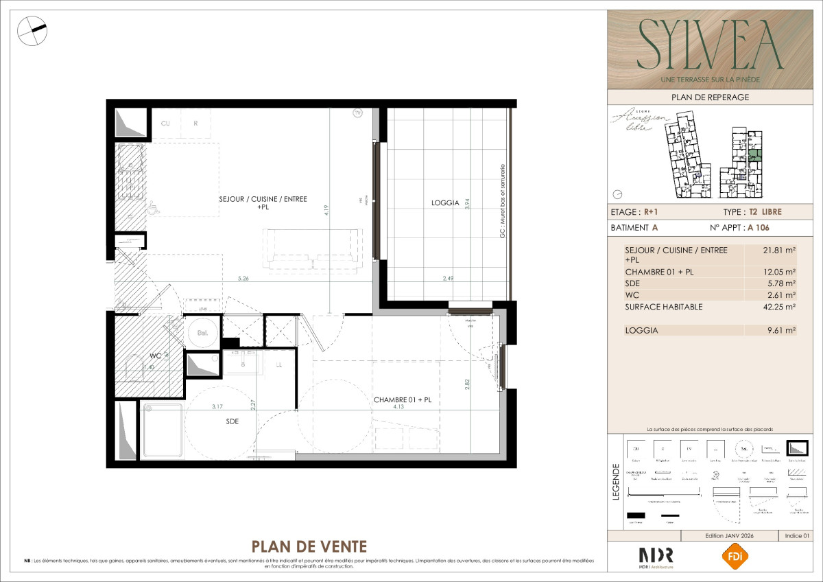 | A106 | 1 | N° de lot A106. Appartement + Parking sous-sol + Parking sous-sol Terrasse de 9,61 m² | 2p | 42,25 m² Plan | 20 % | Plan | 229 000 € |