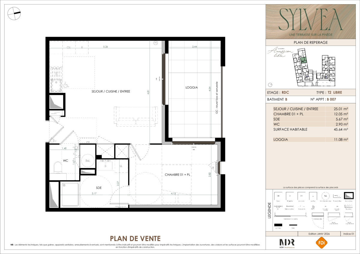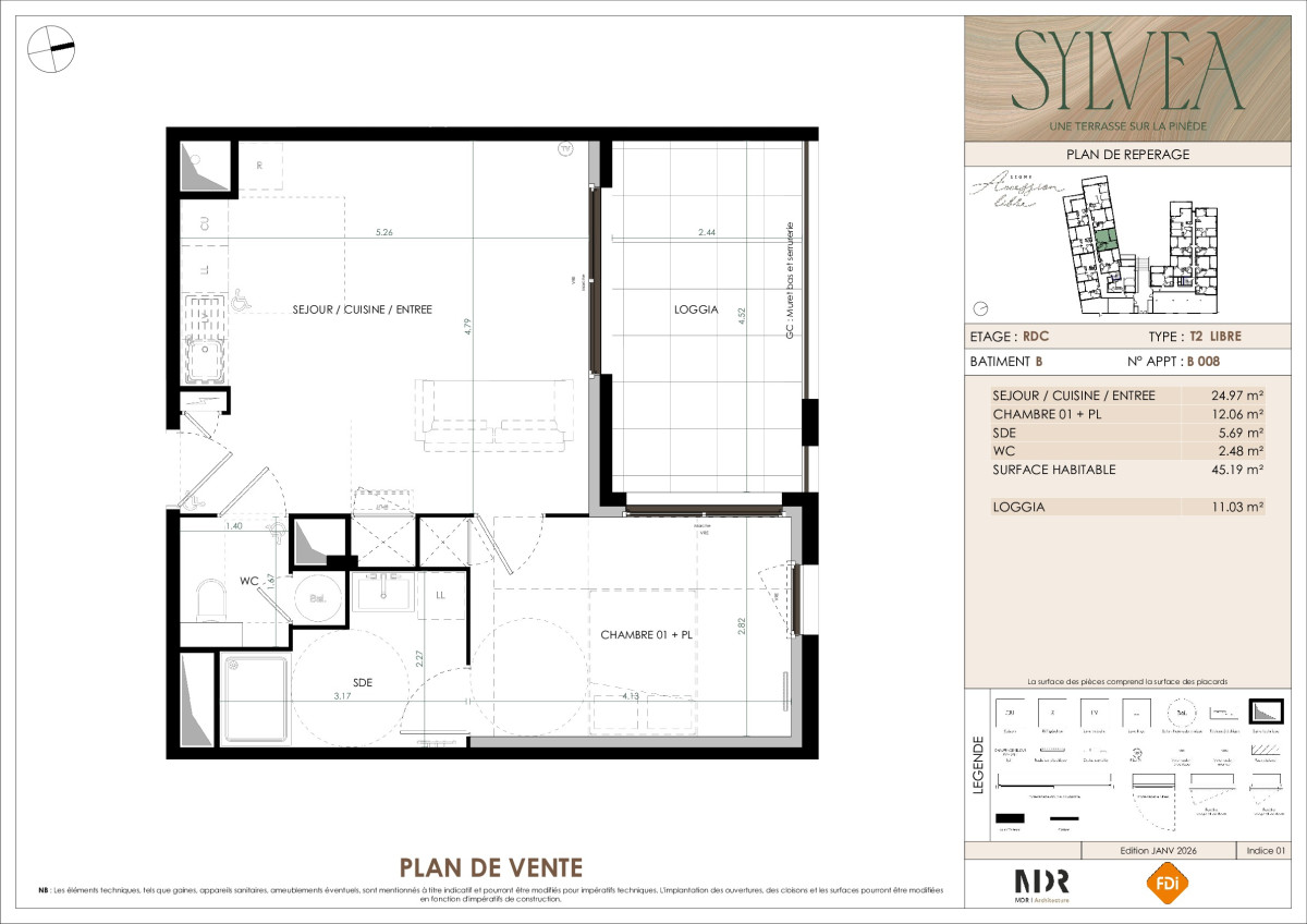 | B008 | 0 | Appartement + Parking sous-sol + Parking sous-sol Terrasse de 11,03 m² | 2p | 45,19 | 20 % | Plan | 229 000 € |