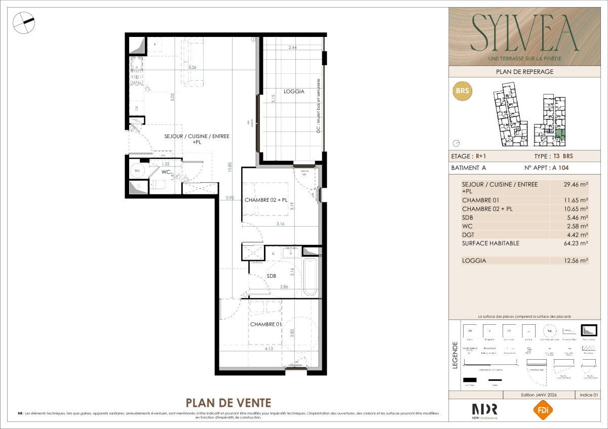 | A104 | 1 | N° de lot A104. Appartement + Parking sous-sol Terrasse de 12,56 m² | 3p | 64,23 m² Plan | 5,5 % | Plan | 228 000 € |