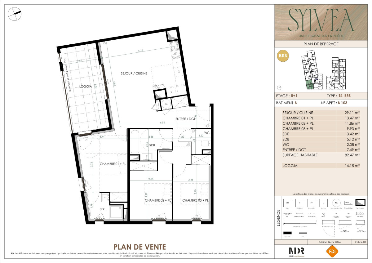 | B103 | 1 | N° de lot B103. Appartement + Parking sous-sol + Parking sous-sol Terrasse de 14,15 m² | 4p | 82,47 m² Plan | 5,5 % | Plan | 257 000 € |
