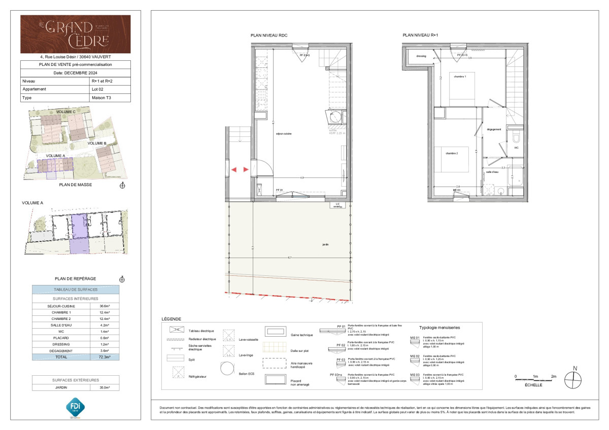| 2M | 1 |  N° de lot 2M. Appartement + Parking extérieur    Jardin de 35,00 m²  |  3p | 72,30 m² Plan | 5,5 % | Plan | 238 000 € |