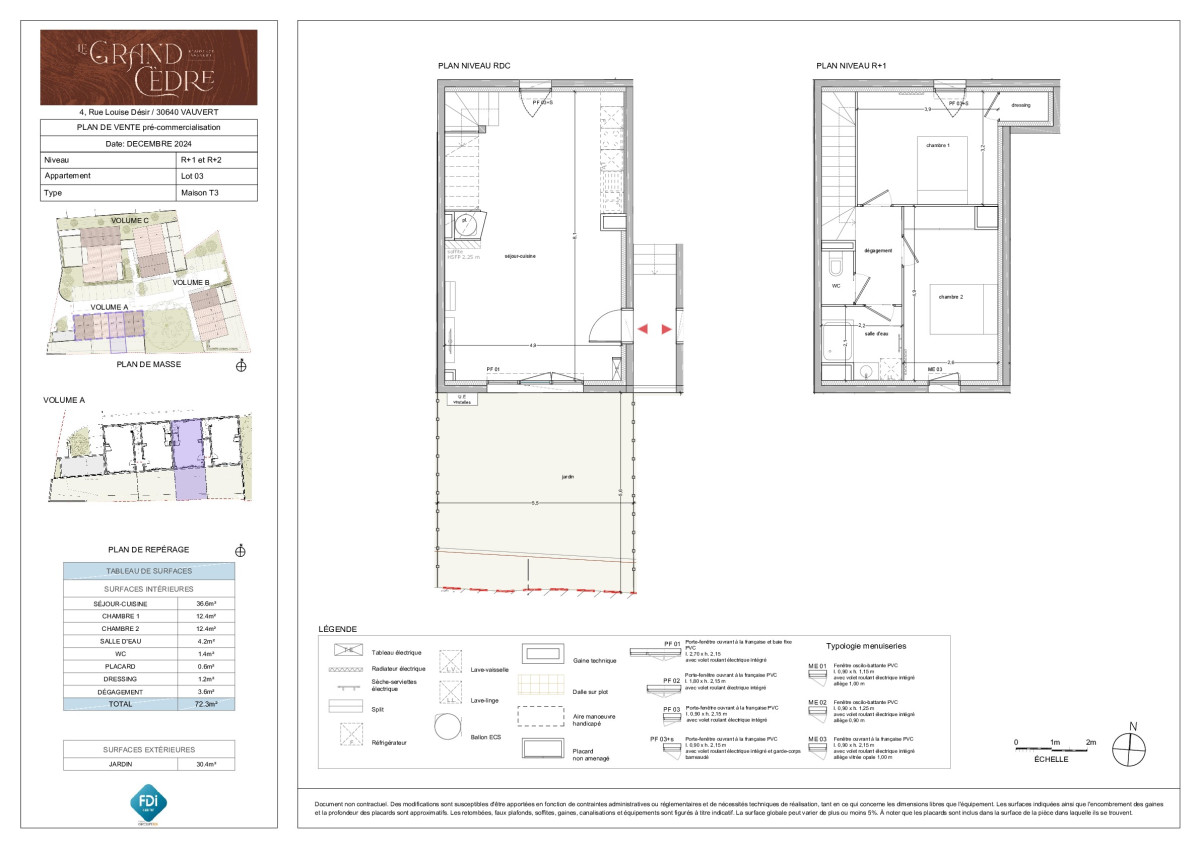 | 3M | 1 |  N° de lot 3M. Appartement + Parking extérieur    Jardin de 30,40 m²  |  3p | 72,30 m² Plan | 5,5 % | Plan | 237 000 € |