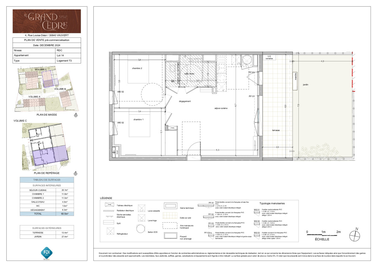 | 14 | 0 |  N° de lot 14. Appartement + Parking extérieur    Terrasse de 13,40 m² Jardin de 27,40 m²  |  3p | 60,50 m² Plan | 5,5 % | Plan | 219 000 € |