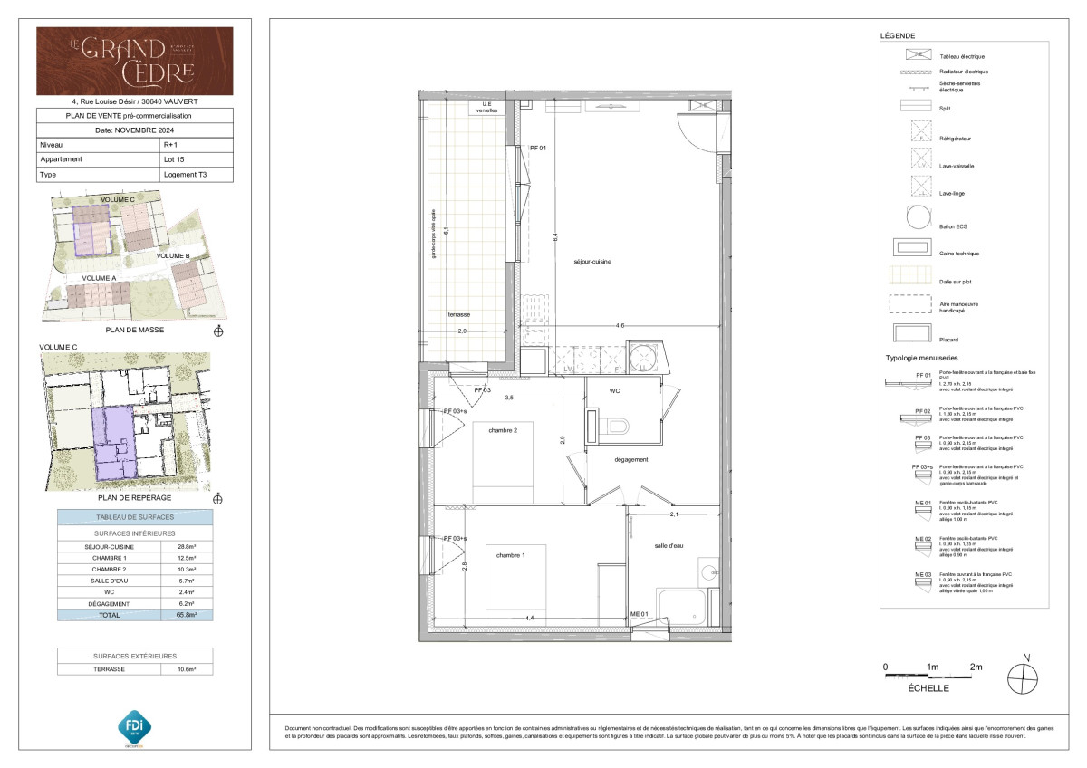 | 15 | 1 |  N° de lot 15. Appartement + Parking extérieur    Terrasse de 10,60 m²  |  3p | 65,80 m² Plan | 5,5 % | Plan | 215 000 € |