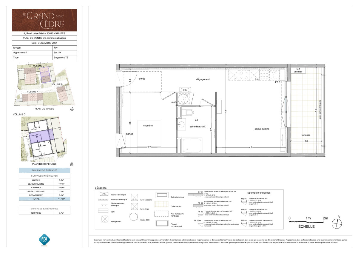 | 19 | 1 |  N° de lot 19. Appartement + Parking extérieur    Terrasse de 8,70 m²  |  2p | 44,40 m² Plan | 5,5 % | Plan | 156 000 € |